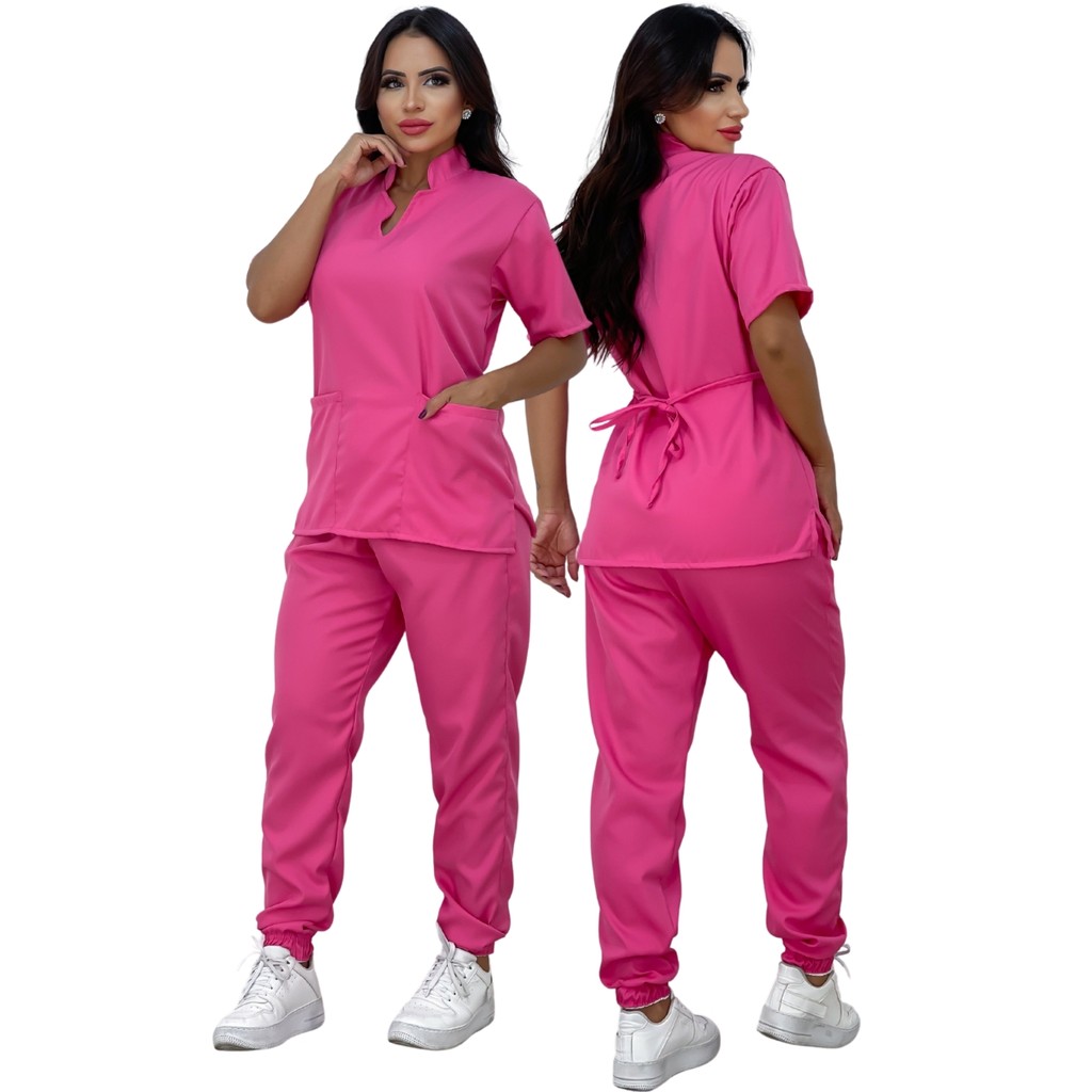 Pijama Oxford Cirúrgico Scrub Feminino Com CRACHÁ Personalizado Scrub Hospitalar Gola Padre Jogger de Clínicas Oxford
