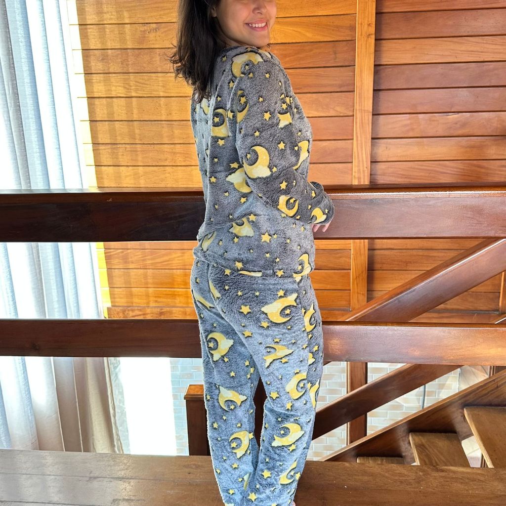Pijama Ultra Soft Feminino Quentinho Fleece Peludinho para Inverno Frio