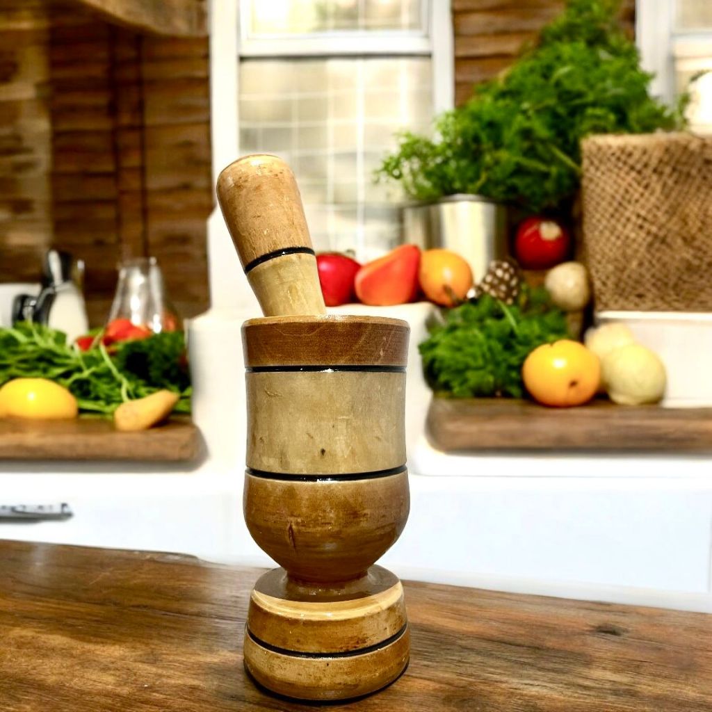 Pilão de Madeira Natural Maciça com Socador para Alho Ervas e Caipirinha