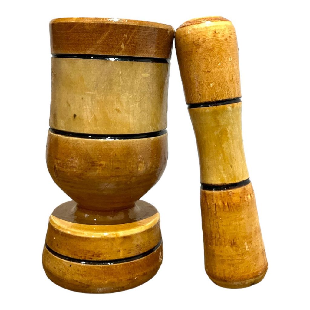 Pilão Madeira Envernizado Socador de Alho Temperos Pimenta Cozinha Domestico Restaurante Bar