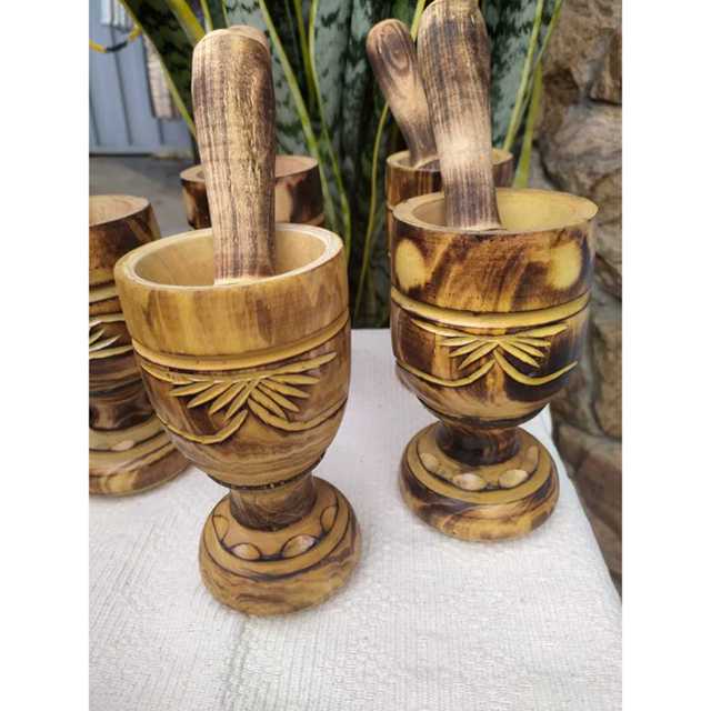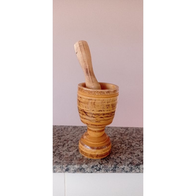 Quem nunca usou um pilão para fazer aquele tempero fresco na hora de fazer uma comida não e mesmo. Temos o produto ideal para você. TAMANHO: 16 x 8 MATERIAL : Madeira com acabamento em desenho tropical e também na opção liso com faixa . Acompanha a mão de pião ( socador )de aproximadamente 15 cm