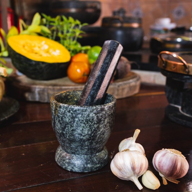 Altura total da peça: 12cm - Diâmetro: 9cm – Capacidade do Pote: 150gramas. Por ser peças artesanais, as medidas e coloração podem variar um pouco. O pilão de pedra sabão é feito artesanalmente com excelente qualidade e fino acabamento, Além de longa durabilidade e fácil manuseio. A matéria prima utilizada, a pedra sabão, libera expressivas quantidades de elementos nutricionais como: cálcio, ferro e manganês, que são essenciais para saúde e bem-estar. O pilão de pedra sabão, com sua estética única, além de conservar temperos por mais tempo, se revela uma escolha versátil, podendo ser empregado na preparação de caipirinha. Cura da peça: O processo da “cura” de sua peça é um passo muito importante para a conservação, durabilidade e também estética, deixando-a mais uniforme. Para realizar esse processo, basta untar toda peça com óleo de soja e deixar no sol por 40 minutos. A peça também pode ser curada no forno a uma temperatura de 160ºC por 40 minutos.
