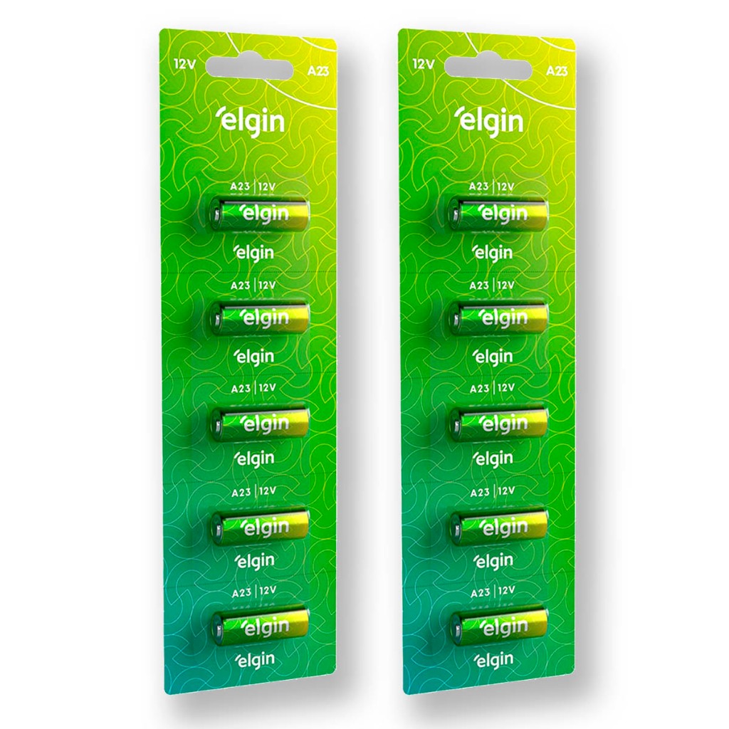 Pilha Alcalina 23A Elgin Bateria MN21 V23GA A23 kit 10 unidades