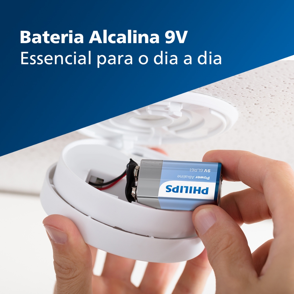 Pilha Alcalina 9V Philips Bateria 9 Volts 6LR61 6F22 kit 2 unidades