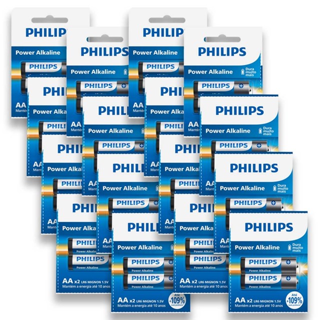 Pilha Alcalina AA Philips Bateria 2A Pequena kit 24 unidades