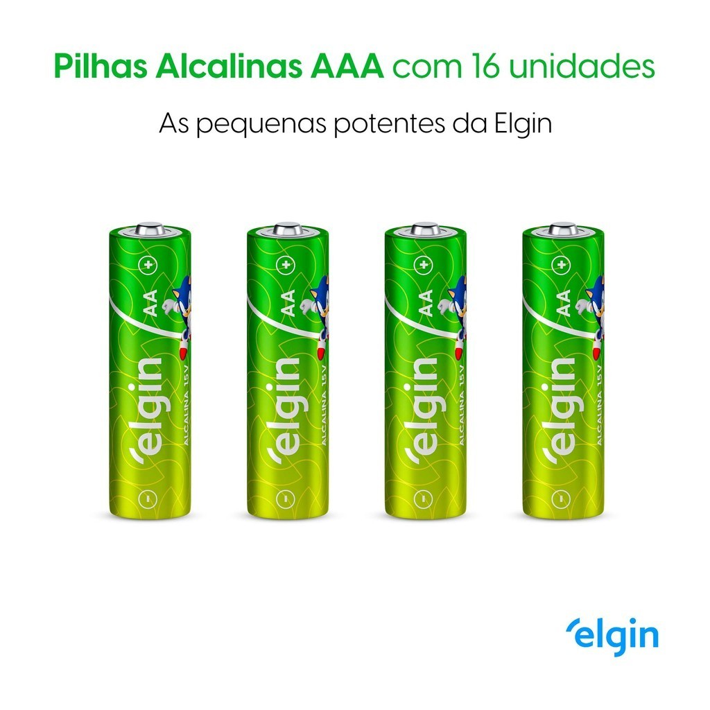 Pilha Alcalina AAA Elgin Bateria 3A Palito 16 unidades