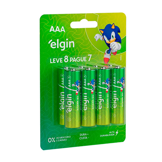 Pilha Alcalina Aaa Elgin LR03A 1,5v Alta durabilidade Cartela 8 Unidades Kit