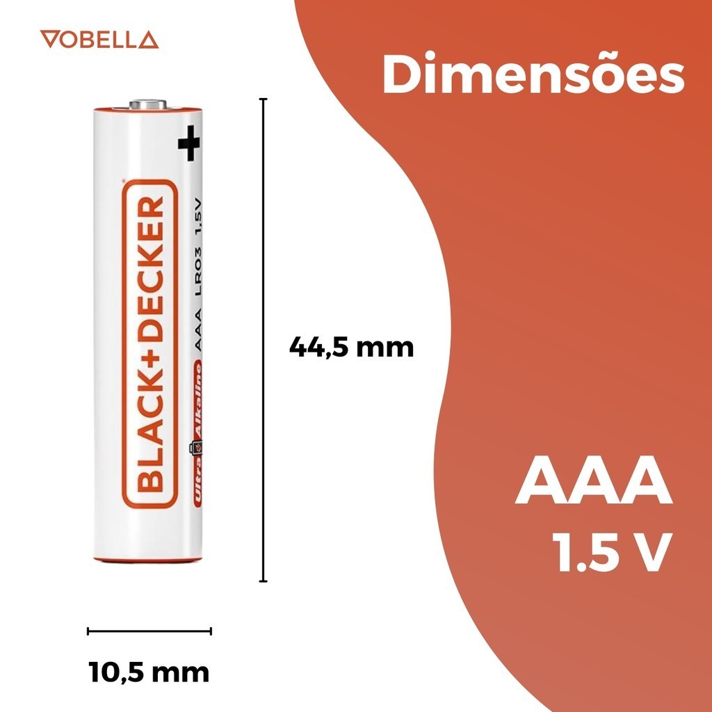 Oii, é um prazer ter você aqui! Cansado de ver seus dispositivos eletrônicos pararem no meio de uma tarefa importante? Se você já teve que interromper uma conversa, assistir a um filme ou até mesmo um jogo porque os dispositivos pararam, você entende a dor da interrupção. As Pilhas Alcalina AAA LR03 1.5V Palito 2 Unidades Black+Decker são a solução para manter os seus dispositivos funcionando sem interrupções. O que é: - Pilha Alcalina AAA LR03 1.5V Palito 2 Unidades Black+Decker. - Marca: Black+Decker. - Contém: 1 Blister com 2 unidades. - Modelo: Alcalina AAA LRO3. - Pilha Palito. - Voltagem: 1.5 Volts. - NÃO RECARREGÁVEL. - Ultra Alkaline. O que tem: - Dimensões: 44.5 x 10.5 mm. - Alta Durabilidade. - Economia e Qualidade. Onde usar: - Mouses. - Relógios. - Lanternas. - Teclados sem fio. - Controles de Games. - Fechaduras eletrônicas. - Dispositivos portáteis diversos. - Alguns tipos de controles remotos. Como usar: - Abra o compartimento de pilhas do seu aparelho. - Remova as pilhas antigas, se houver. - Insira as pilhas alcalinas, garantindo que os polos positivo e negativo estejam na posição correta. - Feche o compartimento das pilhas. - Seu aparelho está pronto para uso novamente! Evite interrupções inoportunas e mantenha os seus dispositivos funcionando de forma confiável. Escolha as Pilhas Alcalinas AAA Palito Black+Decker para garantir energia de longa duração e desempenho constante. Surgiu alguma dúvida? Entre em contato com a gente! Boas Compras :)