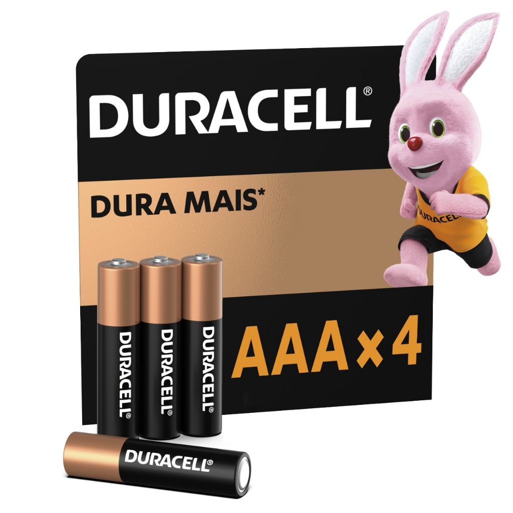 Quando se trata de pilhas confiáveis e de longa duração, Duracell é a melhor opção. Projetadas para fornecer aquela energia extra as pilhas AAA (Pilha Palito) proporcionam energia confiável aos aparelhos do dia a dia, como brinquedos, controles remotos, consoles de jogos portáteis, fechaduras eletrônicas, lanternas, etc. Além disso, a tecnologia de Duracell preserva a energia das pilhas que ainda não foram usadas, por até 10 anos.As Pilhas Alcalinas Duracell AAA duram até 10 vezes mais* vs. pilhas comuns de zinco-carbono. * Os resultados podem variar por dispositivo. Composição: Dióxido de Manganês, Zinco, Hidróxido de Potássio, Grafite e Óxido de Zinco Mantenha as pilhas fora do alcance das crianças. Se engolidas, consulte um médico imediatamente. Pode explodir, vazar e/ou causar queimaduras, caso recarregado, descartado no fogo, misturado com uma pilha diferente, inserido ao contrário ou desmontado. Substitua todas as pilhas ao mesmo tempo. Mantenha as pilhas na embalagem original até seu uso. Não transporte pilhas no seu bolso ou na bolsa. Não remova a etiqueta da pilha. Validade 01/2032