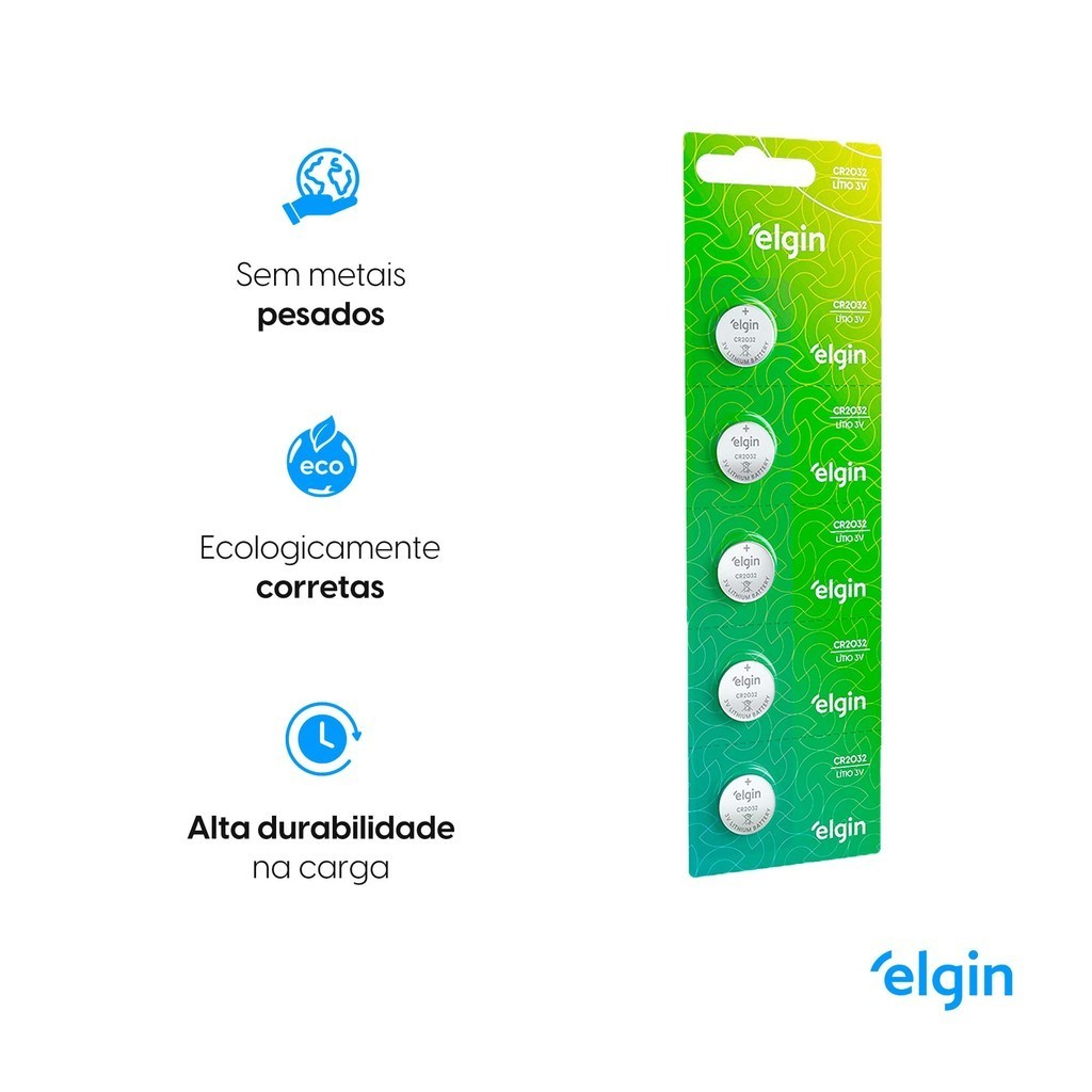 Pilha CR2032 3V Elgin Bateria Moeda kit 20 unidades