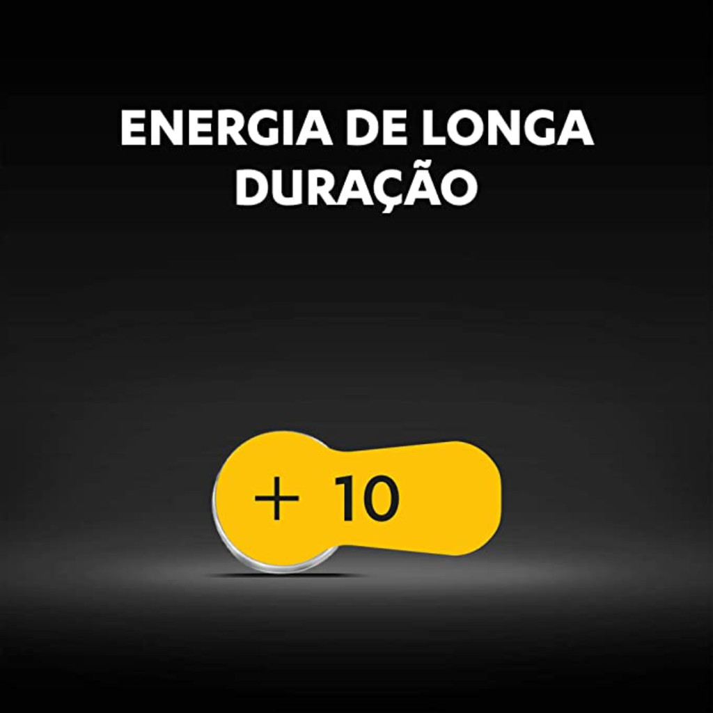 A Duracell fabrica pilhas alcalinas de alta performance, baterias especiais e pilhas recarregáveis. Fundada no início dos anos 40, a empresa se tornou, desde então, uma marca icônica em energia pessoal e confiável por suas pilhas compactas e de maior duração. E no coração disso tudo está o Coelhinho da Duracell. Ouça cada momento com as pilhas auditivas Duracell nº 10 de longa duração. Elas são simples de segurar, substituir e remover, devido ao comprimento do selo EasyTab que facilita o seu manuseio. As embalagens possuem selos de diferentes cores (amarelo, laranja, marrom e azul) para que você não tenha dificuldades em encontrar o tamanho desejado : 10, 13, 312 E 675. A tecnologia de Duracell garante às pilhas auditivas 4 anos de armazenamento. Composição: Zinco, Dióxido de manganês, hidróxido de potássio Mantenha as pilhas fora do alcance das crianças. Se engolidas, consulte um médico imediatamente. Não recarregue ou descarte as pilhas e baterias no fogo. Não transporte pilhas soltas no bolso ou na bolsa. Validade 01/2032