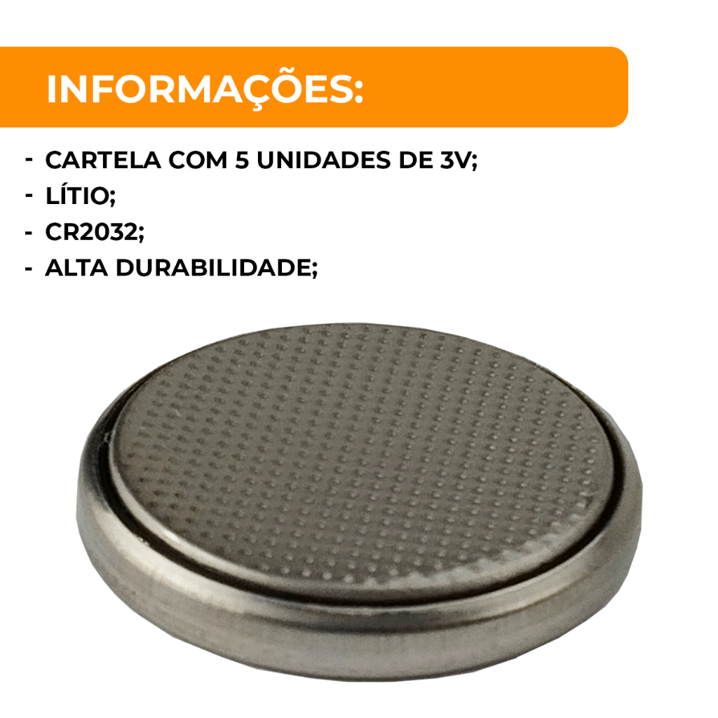 Longa Duração e Confiabilidade para Seus Dispositivos! ⏳ A Pilha Elgin CR2032 3V é a escolha ideal para quem busca desempenho consistente e durabilidade em relógios, calculadoras, alarmes automotivos, teclados sem fio e outros eletrônicos que exigem baterias de lítio. Com tecnologia de lítio, ela garante estabilidade e segurança, proporcionando tranquilidade no dia a dia. Opções de Quantidade para Sua Necessidade Escolha a quantidade que melhor se adapta ao seu uso! Disponível em cartelas com 5 ou 10 unidades CR2032, facilitando o reposicionamento e evitando interrupções no funcionamento dos seus aparelhos. Compatibilidade e Praticidade Compatível com diversos modelos de dispositivos eletrônicos, a Pilha Elgin CR2032 é fácil de instalar e oferece segurança para o uso diário. Não deixe seus aparelhos parados: garanta sempre uma pilha Elgin à mão para manter tudo funcionando perfeitamente!