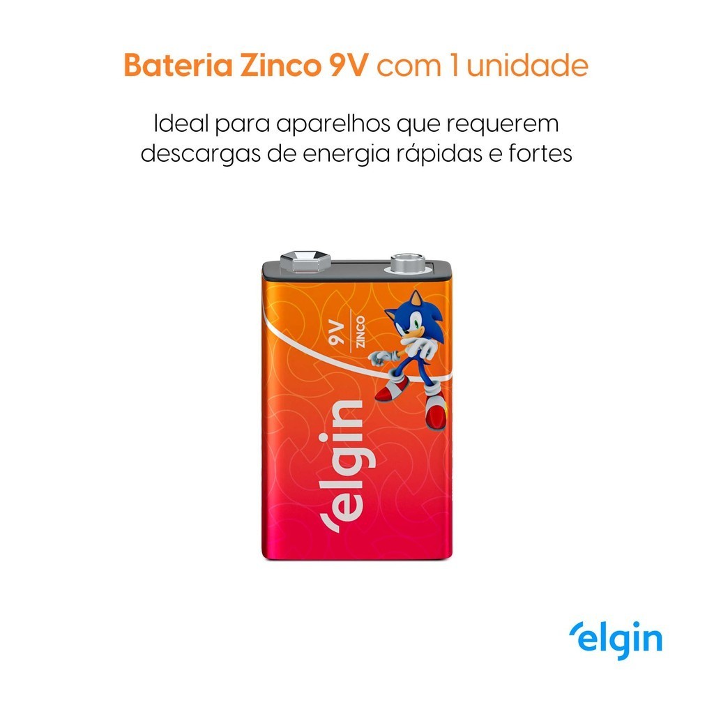 Pilha Zinco 9V Elgin Bateria 9 Volts Carvão 6F22 kit 5 unidades