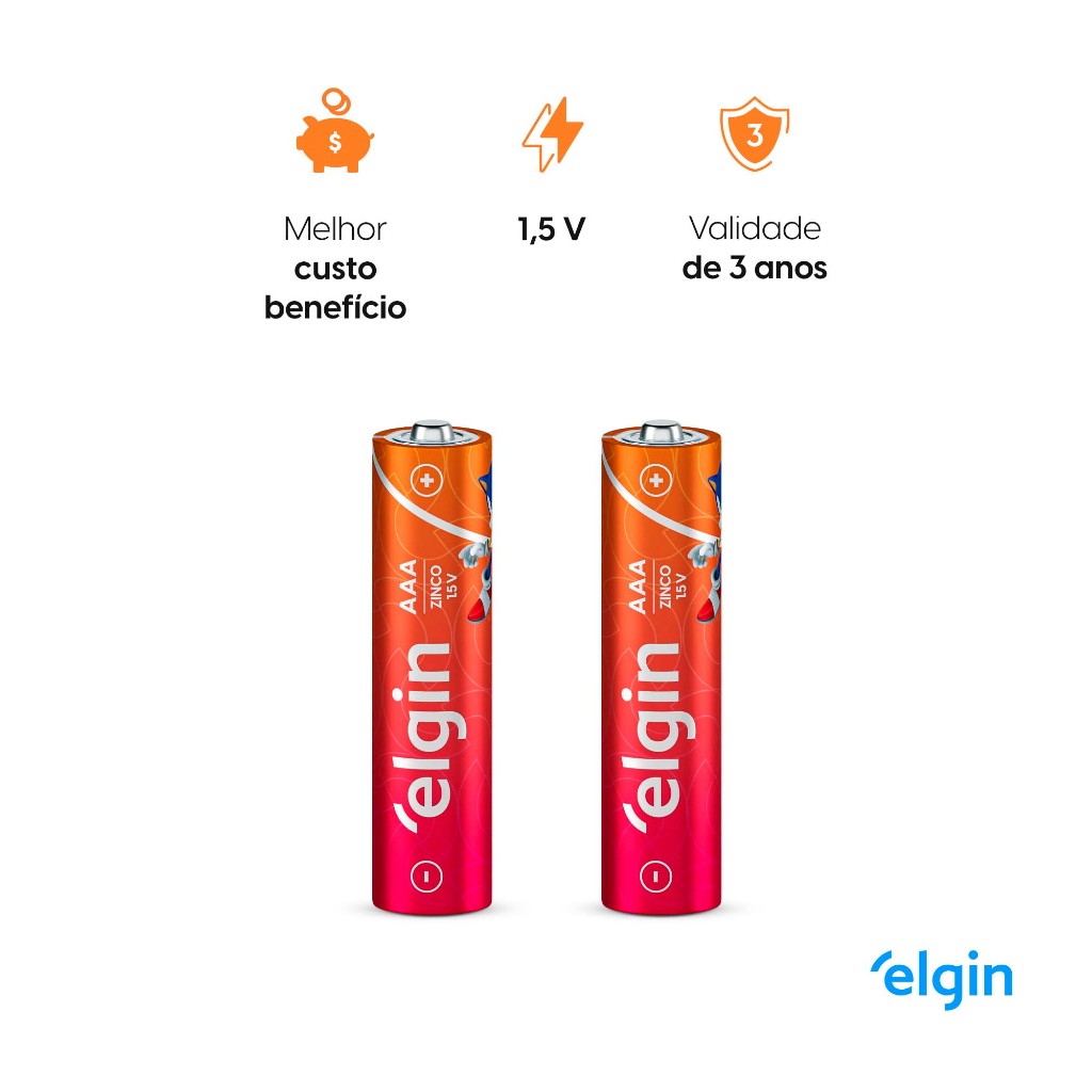 Pilha Zinco AAA Elgin Bateria Carvão 3A Palito Caixa kit com 60 unidades