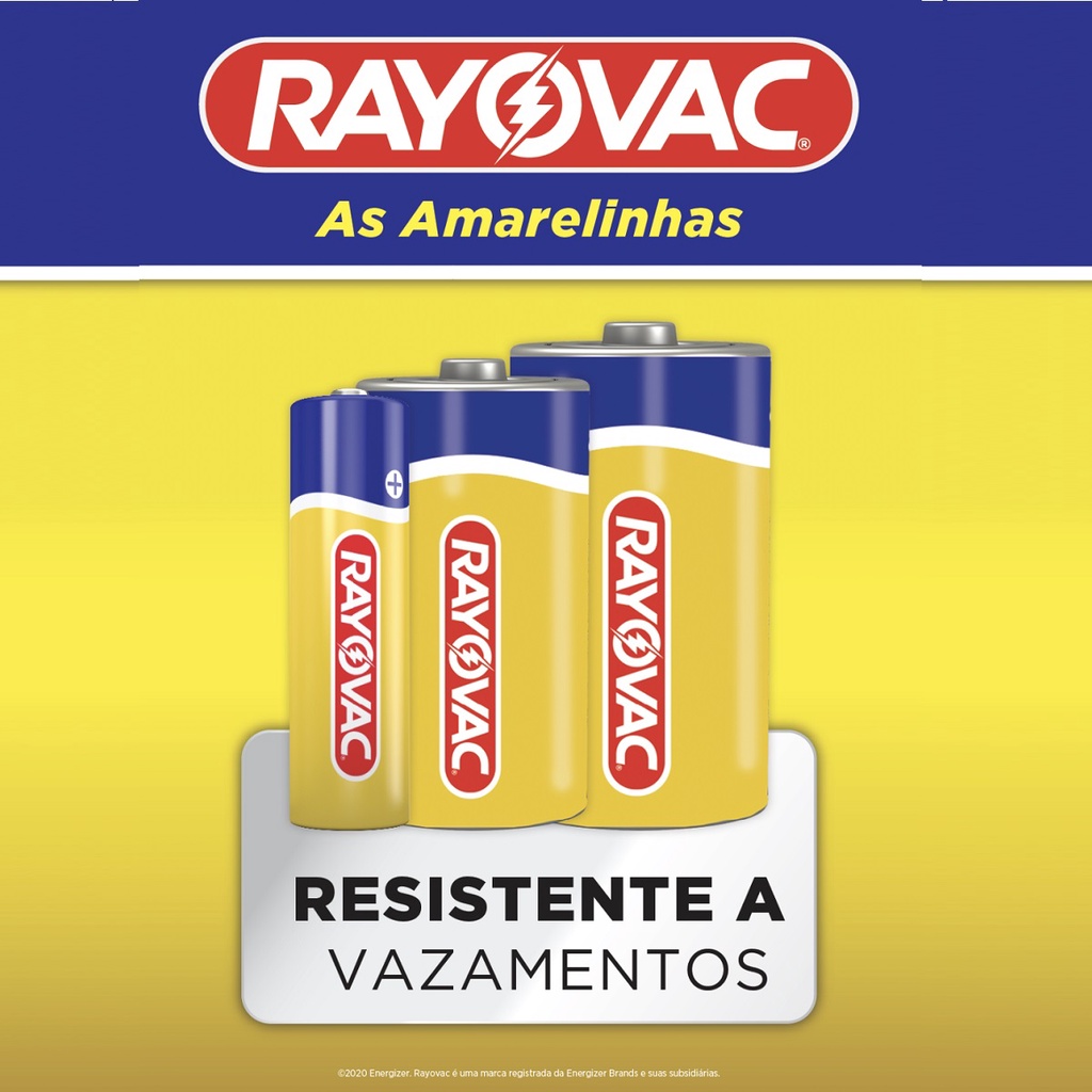 Pilha Zinco D Rayovac Bateria Carvão Grande LR20 Amarelinha Bandeja kit 12 unidades