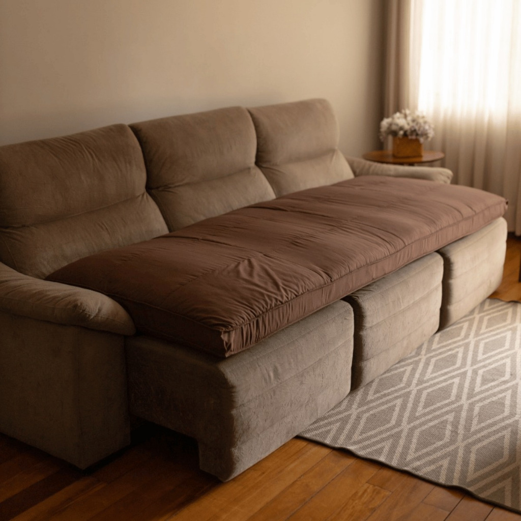 Pillow Top Protetor Sofá Retrátil e Reclinável Flat 10cm Altura Dupla face Lavável em Máquina