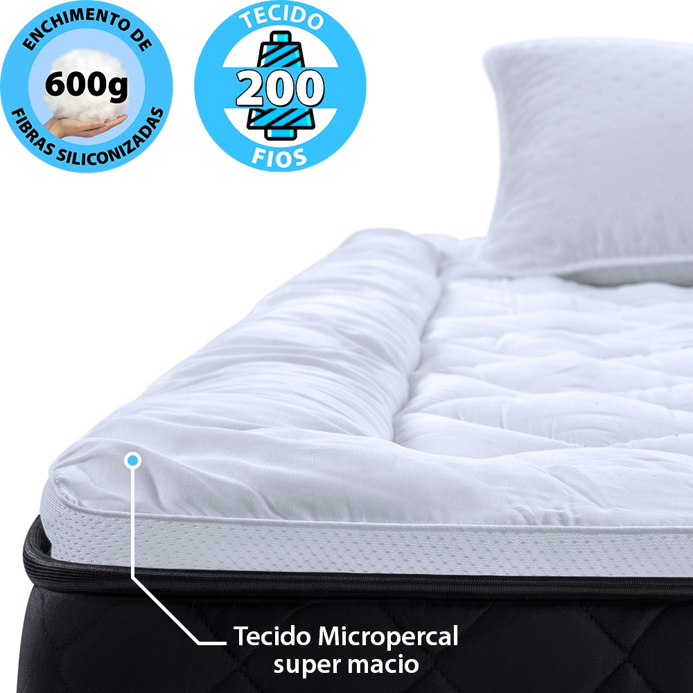 Pillow Top Queen Extra Macio Toque de Pluma em Fibra Siliconada 600g/m2 158x198cm BF Colchões