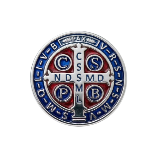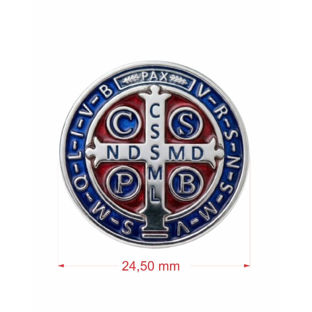 Pim Botom Broche São Bento Prateado Gravado em Baixo Relevo Pintura Colorida