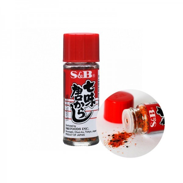 "Shichimi" (pronuncia-se Chitimí) em japonês significa "7 sabores". É um tempero apimentado de sabor elaborado e aromático, indicado para incrementar sopas como udon e lámen, além de muitos outros pratos. Mais suave que o "ichimi", devido à combinação dos sete sabores. Produto em pó, para uso direto sobre o alimento. Veja em nosso site receitas de udon e lámen. Ingredientes: Pimenta Chilli, Casca de Laranja, Gergelim Preto, Gergelim Branco, Pimenta Japonesa (Sansho) e Alga Fabricante: S&B Foods Origem: Japão