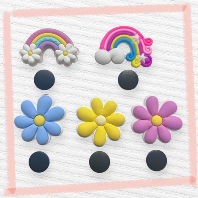 Pin Jibbitz Adaptador Acessórios Para Decoração de Sapatos Flor Arco Iris 5 Peças