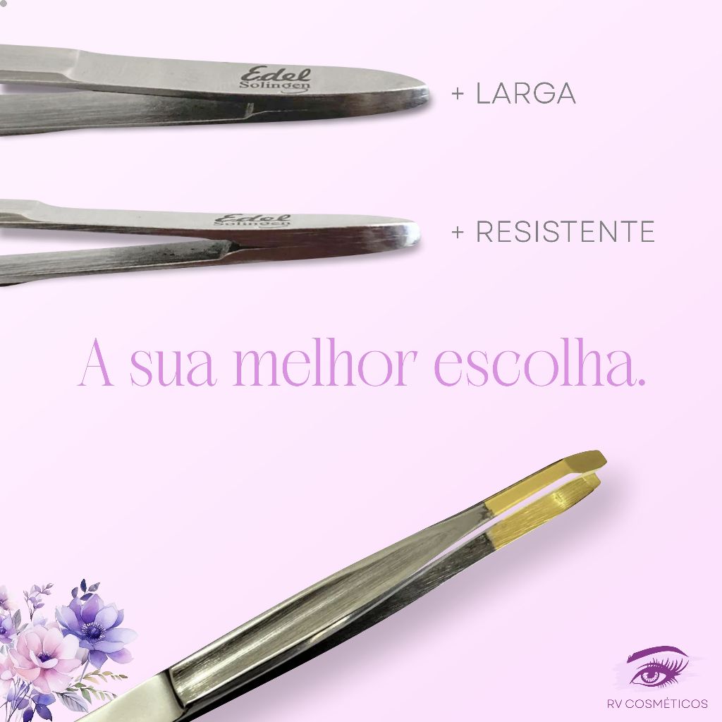 Pinça Para Sobrancelha Depilação Canelada Ponta Reta Estreita Inox 9cm Edel Solingen 2341.303 Profissional