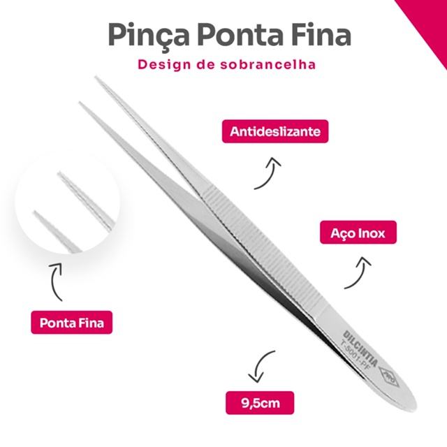 Pinça Ponta Fina Precisa Sobrancelha Aço Inox Esterilizável Dilcintia