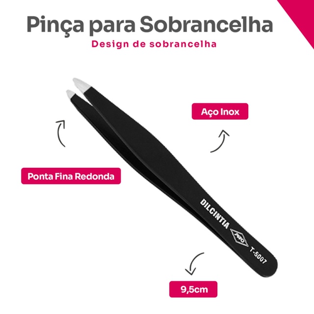 | Pinça Sobrancelha Preta Ponta Fina Redonda Aço Inox Dilcintia este produto | R$ 21,00 | — | 5.0/5 | 1 |