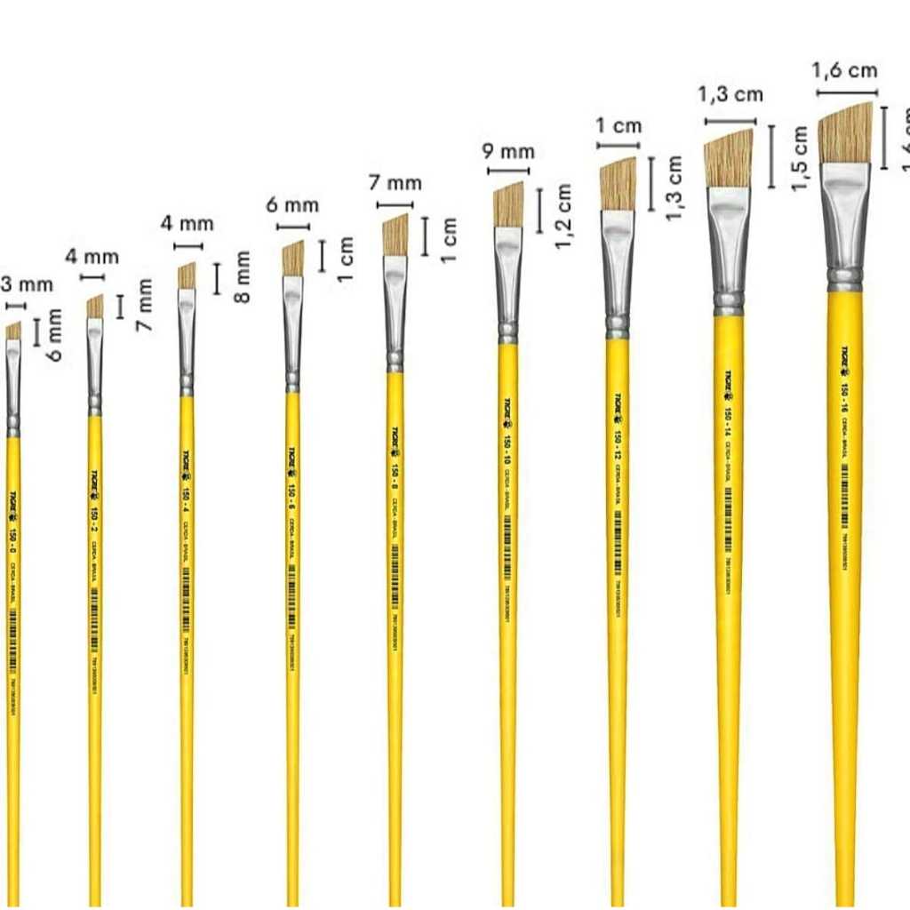 Pincel Chanfrado Tigre Pincel Tigre 150 - Chanfrado Pincel Chanfrado com Cerda Brasil Branca, uma cerda forte, longa, durável e flexível. Indicados para tintas espessas como por exemplo tecido. - Cabo longo amarelo - Cerda branca - Formato chanfrado - Técnica tecido - Virola de alumínio