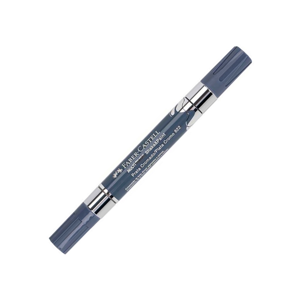 Pincel marcador permanente Multimark Cromado Prata MM/ESSP822 - Faber-Castell Marcador Criativo Multimark, excelente cobertura em múltiplas superfícies como tecido, parede, madeira, vidro e plástico. Disponíveis nas cores classicas, neon e metálica. Detalhes: - Base de água - Efeito espelho - Serve em diversas superfícies - Contém 1 marcador permanente na cor prata cromado - Duas pontas: Ponta de 2,5 mm versátil e ideal para preenchimento e contorno / Ponta de 0,7 mm para traços mais finos e detalhes