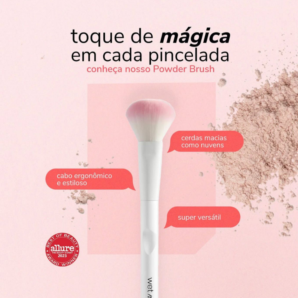 Fundada em 1979 no Brooklyn, EUA, e com sede em Los Angeles desde 2003, a Wet n Wild é referência em beleza acessível e de alta performance. Todos os produtos são 100% cruelty-free e a maioria é vegana. A marca é reconhecida por sua inovação constante, oferecendo uma ampla gama de produtos, como pincéis, primers, batons, cuidados com a pele e esmaltes. O Powder Brush é perfeito para uma aplicação uniforme e suave de produtos em pó. Suas cerdas macias e curvas distribuem o produto de maneira equilibrada, proporcionando acabamento natural e polido. Extremamente versátil, pode ser usado com pó facial, translúcido, bronzer ou blush. Seu cabo ergonômico oferece conforto e controle durante a aplicação, garantindo precisão e praticidade para todos os estilos de maquiagem. Benefícios: Cruelty-free; Vegano; Cerdas macias e curvas para aplicação uniforme; Cabo ergonômico para conforto e controle; Versátil: ideal para pó facial, translúcido, bronzer ou blush. Modo de usar: 1. Segure o pincel pelo cabo com firmeza e conforto; 2. Passe as cerdas no produto desejado; 3. Aplique no rosto com movimentos circulares suaves ou pinceladas leves, conforme o efeito desejado; 4. Distribua o pó de forma uniforme para um acabamento natural; 5. Após o uso, limpe o pincel com limpador específico para manter as cerdas macias e livres de resíduos. Informações Técnicas: Tipo: Pincel para aplicação de pó. Indicação: Pó facial, translúcido, bronzer ou blush. Cerdas: Sintéticas macias e curvas. Cabo: Ergonômico. Cruelty-free: Sim. Vegano: Sim. Observações: Uso externo. Manter fora do alcance de crianças. Higienizar regularmente para preservar a qualidade das cerdas e evitar acúmulo de produto.