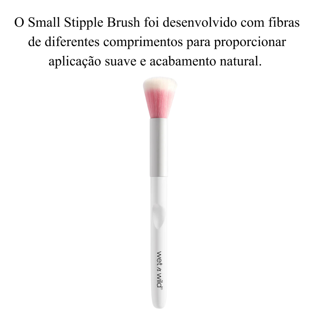 Desde 1979, a Wet n Wild democratiza a beleza com produtos de alta performance e preços acessíveis. A marca mantém compromisso com fórmulas cruelty-free, ingredientes seguros e inovação constante, sempre oferecendo opções para todos os estilos e ocasiões. O Small Stipple Brush foi desenvolvido com fibras de diferentes comprimentos para proporcionar aplicação suave e acabamento natural. Sua estrutura especial permite alcançar e misturar o produto com facilidade, garantindo uma aplicação translúcida, sem marcas e com efeito uniforme. Versátil e de alta performance, é ideal para criar camadas leves de produto, seja para um acabamento sutil ou para intensificar gradualmente a cobertura. Benefícios: 1. Cruelty-free; 2. Vegano; 3. Sem glúten; 4. Fibras Polymax sintéticas de dois tons que imitam a textura dos fios naturais; 5. Cabo ergonômico para maior conforto e controle. Modo de usar: 1. Mergulhe as cerdas no produto desejado; 2. Aplique com leves batidinhas usando a parte mais curta das fibras para depositar o produto; 3. Utilize a parte mais longa das cerdas para suavizar e misturar na pele, criando acabamento natural; 4. Continue o movimento até atingir a cobertura desejada; 5. Limpe regularmente o pincel para preservar a qualidade e garantir higiene. Informações Técnicas: Tipo: Pincel stipple pequeno. Indicação: Aplicação e acabamento de produtos líquidos, cremosos ou em pó. Cerdas: Sintéticas Polymax de dois tons. Cabo: Ergonômico. Cruelty-free: Sim. Vegano: Sim. Observações: Uso externo. Manter fora do alcance de crianças. Higienizar regularmente para evitar acúmulo de produto e preservar a maciez das cerdas.