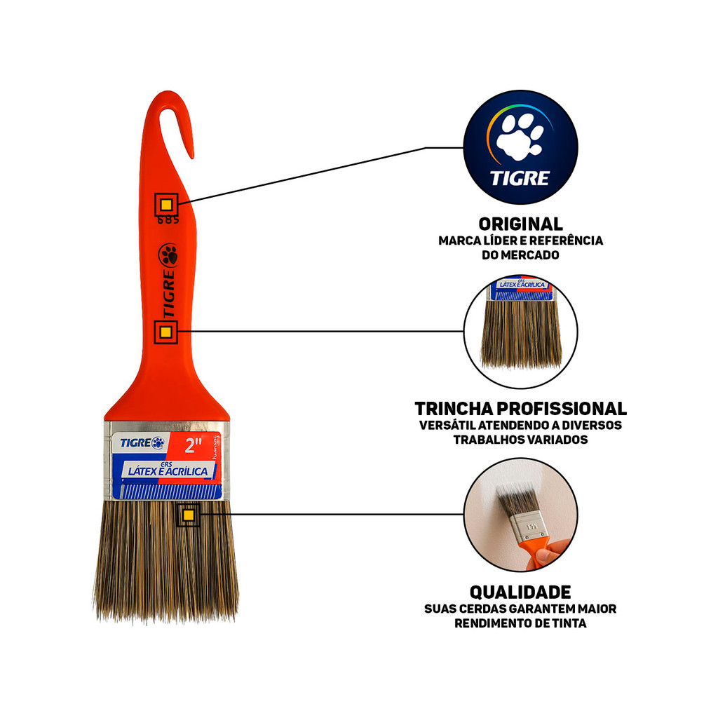 Pincel Trincha Tigre Para Pintura Com Tinta Látex e Acrílica Ref. 695 Pincel Para Pintar Paredes