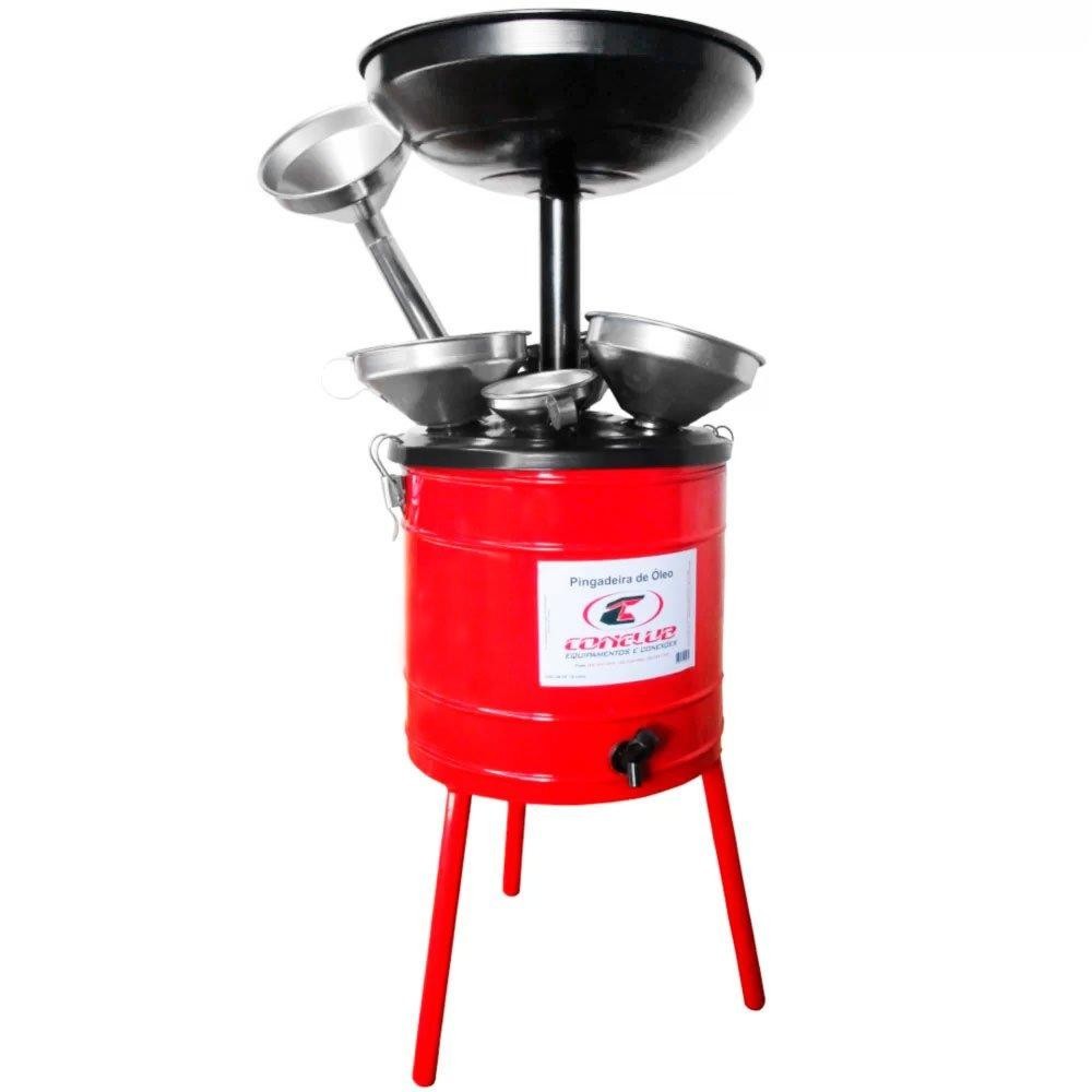 Loja do Mecânico - O que você precisa, nós temos! Pingadeira de óleo com estrutura fabricada em material resistente proporcionando eficiência e durabilidade, possui aberturas para funis que facilitam a entrada do óleo e tripé. Indicada para todos os postos de serviços que oferecem troca de óleo. Acompanha - Coador de óleo na bacia - 6 Funis com formatos diferente - Torneira para escoamento do óleo Especificações Técnicas - Capacidade 20 litros - Com funis Conteúdo da Embalagem - 01 Pingadeira de Óleo 20 Litros com 6 Funis - Conelub Importante - Garantia de 03 meses; - Enviamos em até 24 horas úteis; - A embalagem pode variar de acordo com o estoque do fabricante; - A cor do produto pode variar de acordo com a tela do seu smartphone/computador; - Qualquer dúvida, utilize o campo "Perguntas e Respostas" e converse com o nosso SAC.