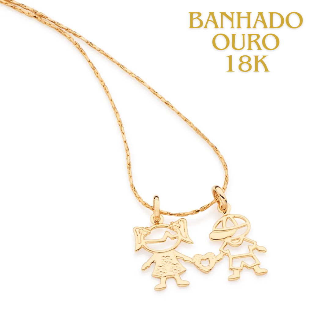 Pingente Casal De Filhos Rommanel Presente Para Mãe De Menino E Menina Banhado Ouro 18k Pingente Casal De Filhos Rommane