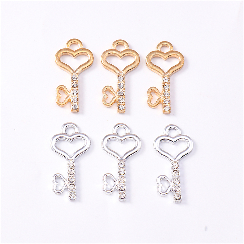 Pingente Chave com Strass Brilhante Banho Zamac Prata/Dourado Para Kit 10/20 peças