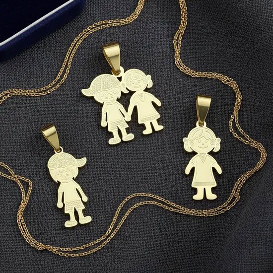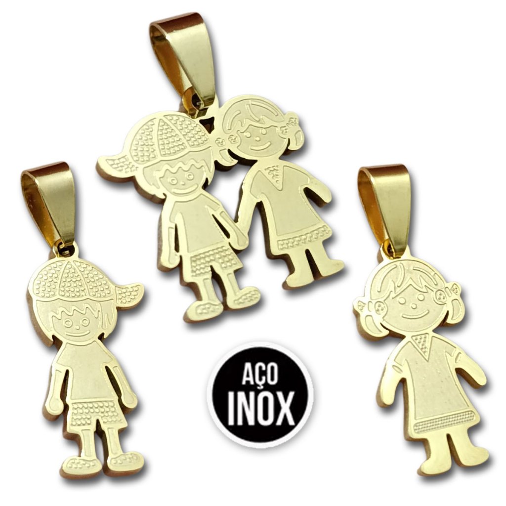| Pingente Colar Filhos Casal Menino Menina Aço Dourado Não Escurece ... este produto | R$ 19,89 | — | 4.9/5 | — |