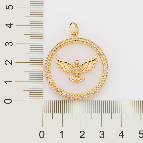 PINGENTE CRAVEJADO POR 67 ZIRCÔNIAS DE 1,25 MM NA BORDA, COMPOSTO POR MADRE PÉROLA SINTÉTICA DE 27 MM COM ESPÍRITO SANTO AO CENTRO CRAVEJADO POR 7 ZIRCÔNIAS DE 1,25 MM.MED 3,80 CM X 3,20 CM *****PRODUTO ORIGINAL***** ACOMPANHA A PEÇA: - NOTA FISCAL - CERTIFICADO DE GARANTIA - EMBALAGEM PARA PRESENTE - ETIQUETA DO PRODUTO NA PEÇA SOBRE A ROMMANEL: - Mais de 30 anos no mercado; - Linha diversificada com mais de 3000 modelos; - Linhas feminino, masculino e infantil; - Presente em todo Brasil e em mais de 20 países; - Joias folheadas a Ouro 18k, Rhodium e Rhodium Negro; - Antialérgicas, não possuem níquel em sua composição; - Possui licenciamentos com Ana Hickmann, Gio Antonelli e Simone&Simaria, que assinam coleções exclusivas.