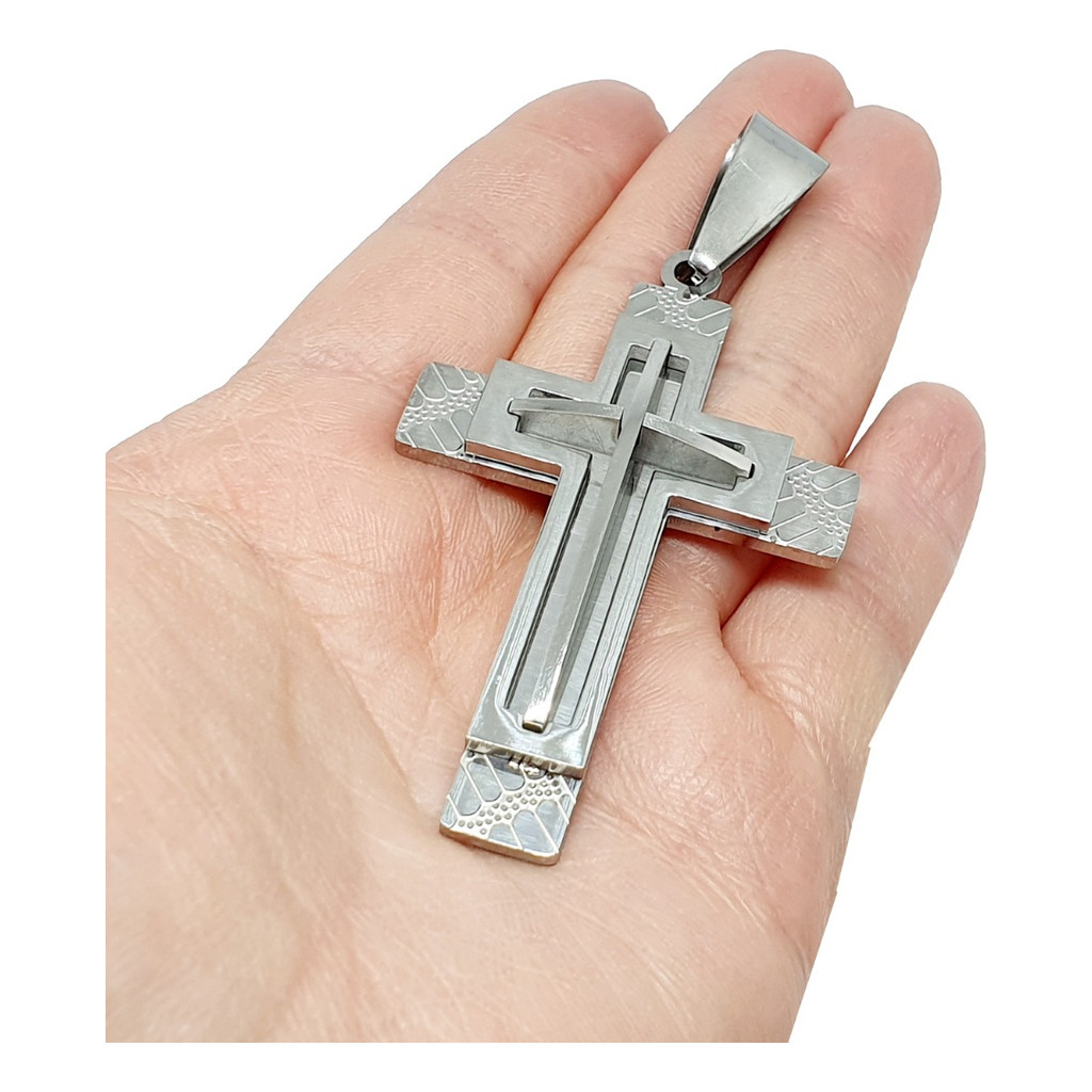 Pingente Crucifixo Cruz Grande Masculino Aço Inox Cirurgico