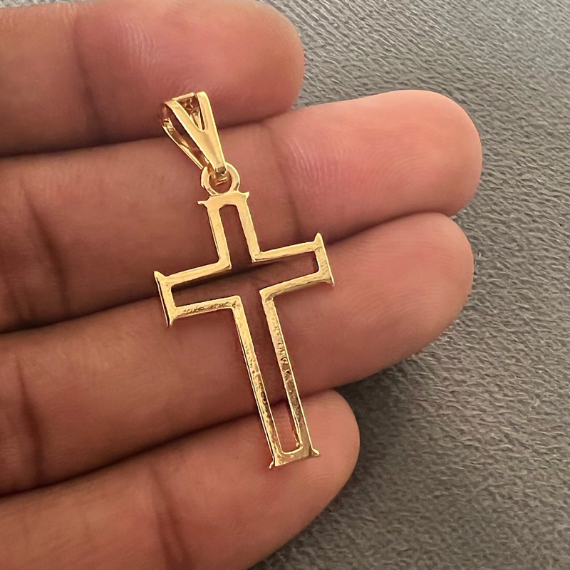 Pingente Cruz Vazada Folhedo A Ouro Medidas 3cm x 2cm ideal para Correntes Finas de até 5mm