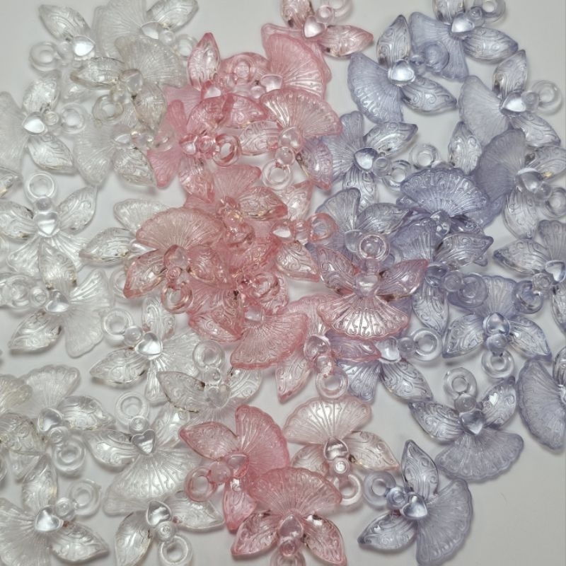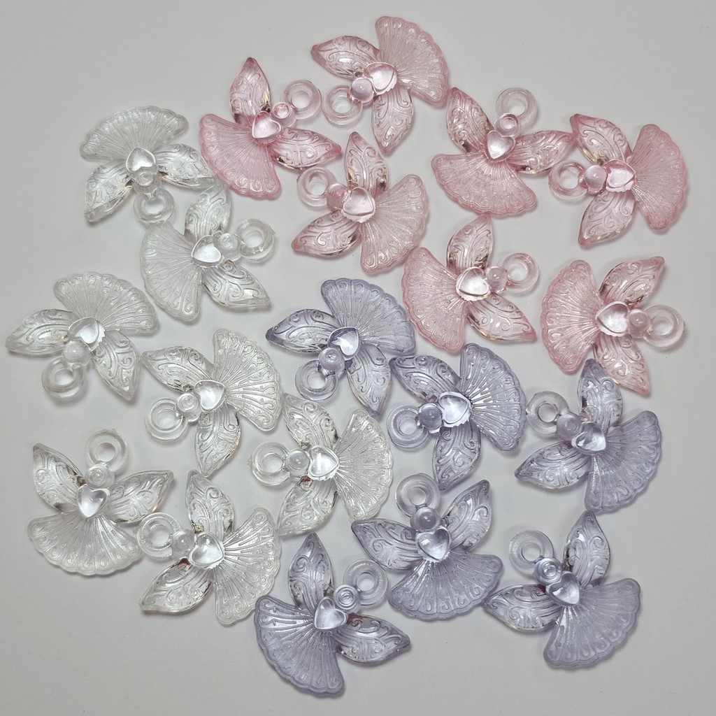 Pingente de anjo Tamanho: 22mm x 22mm Quantidade: 20 gramas ( aproximadamente 21 peças) 50 gramas ( aproximadamente 54 peças ) Cor: transparente, rosa e azul claro Leve e resistente, este pingente possui um acabamento detalhado que agrega elegância e modernidade às suas criações. Perfeito para confecções de lembrancinha, terços, pulseiras, colares e entre outros. Obs.: De acordo com o lote o produto pode apresentar leve variação de cor e padrão, mas sem perder a qualidade. As cores podem variar dependendo da tela do seu monitor