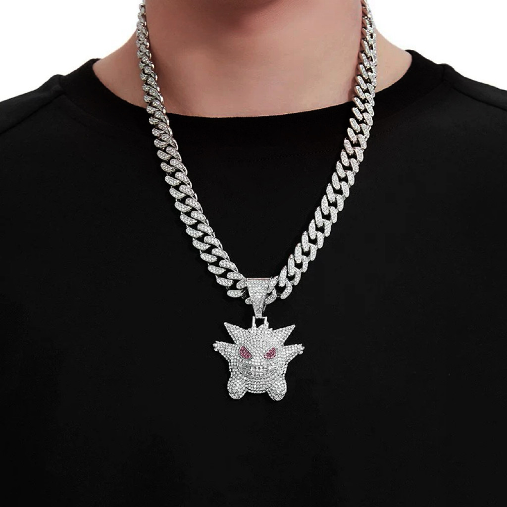 Pingente de diabo, pingente de monstrinho com colar cubano incrustado com diamantes brilhantes aço titânio hip-hop