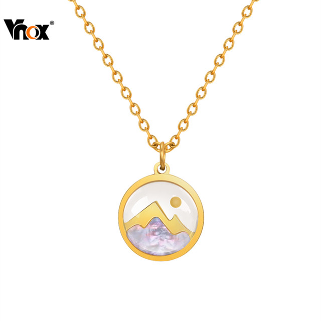 Pingente De Ouro Redondo De Semente De Mostarda De Montanha Vnox Shell , 18k , Corrente Cruzada Plana De Aço Inoxidável , Colar De Desejos Para Mulheres , Meninas , Presente De Joia De Fé Cristã