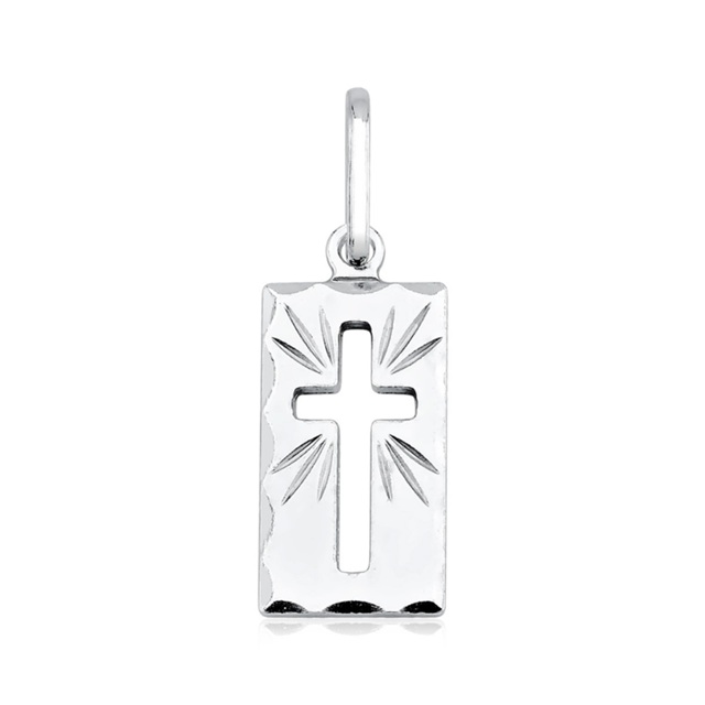 Pingente de Prata 925 Placa com Cruz Vazada