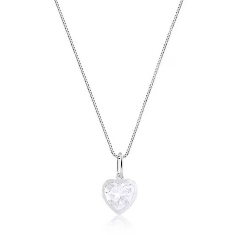 Pingente de Prata 925 Ponto de Luz Coração Zircônia Branca