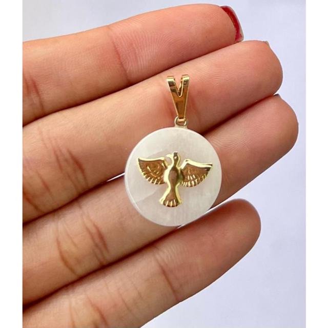 PINGENTE DIVINO ESPIRITO SANTO QUARTZO BRANCO BANHADO A OURO
