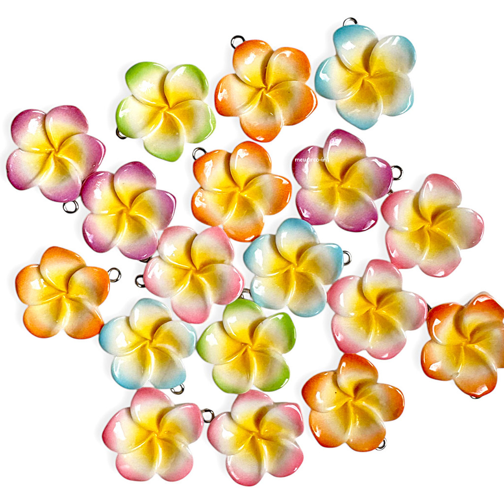 Crie brincos, pulseiras, colares, chaveiros e vários outros acessórios com pingentes! Suas peças ficarão fofas e divertidas. Pingentes Flor Havaiana Colorida Quantidade: 10 pçs (em pares) Material: Resina