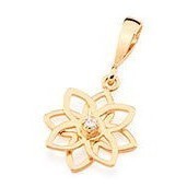 PINGENTE FORMATO POR FLOR VAZADA COM ZIRCÔNIA BRANCA REDONDA DE 1,25MM. MED. 2,50CM. JOIA FOLHEADA OURO 18K