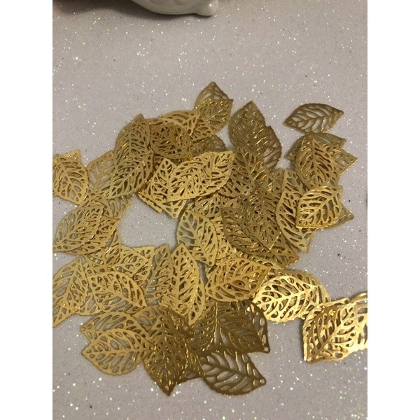 Pingente modelo folha Dourada em metal vazado Tamanho 14x23mm Pacote com 20 unidades