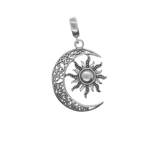 Pingente Medalha De Prata 925 Mistico - Signos Meia Lua E Sol Boho