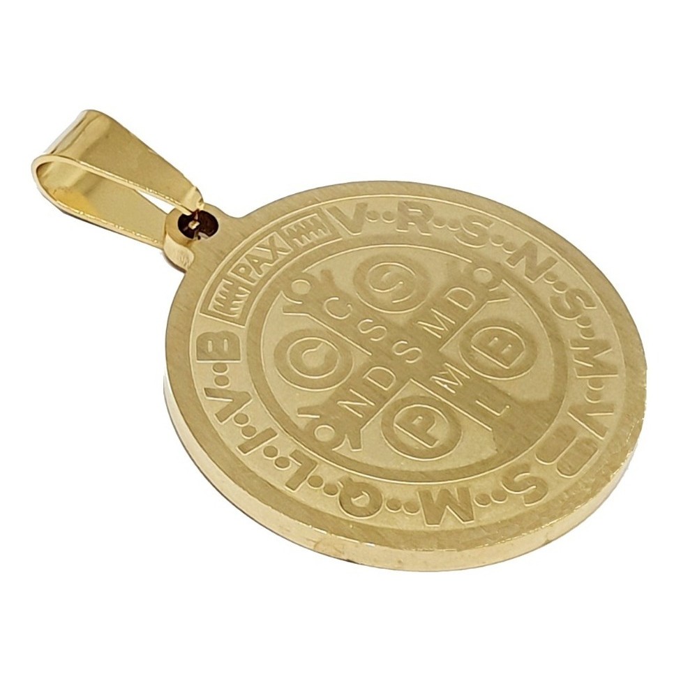 Pingente Medalha De São Bento Dupla Face Aço Folheado A Ouro